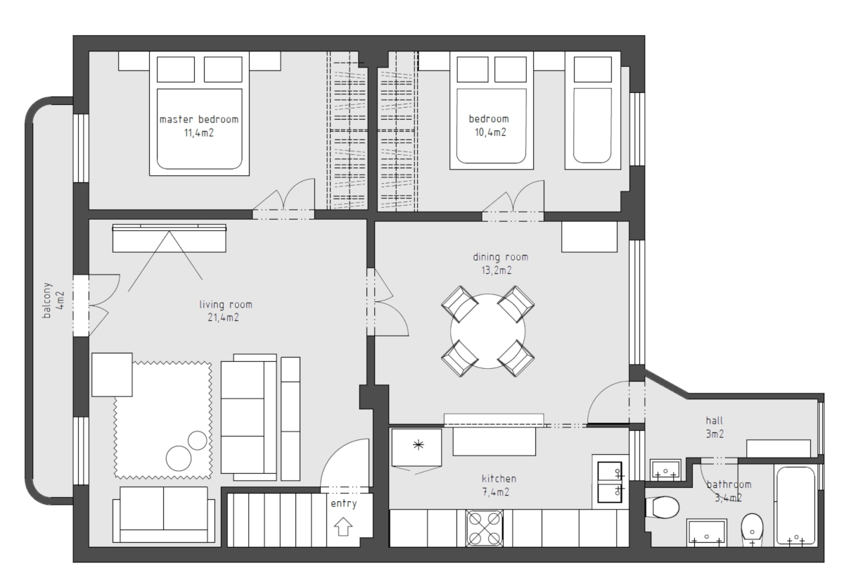 - master bedroom (11,4 sqm) - doublebed 160x200, wardrobe