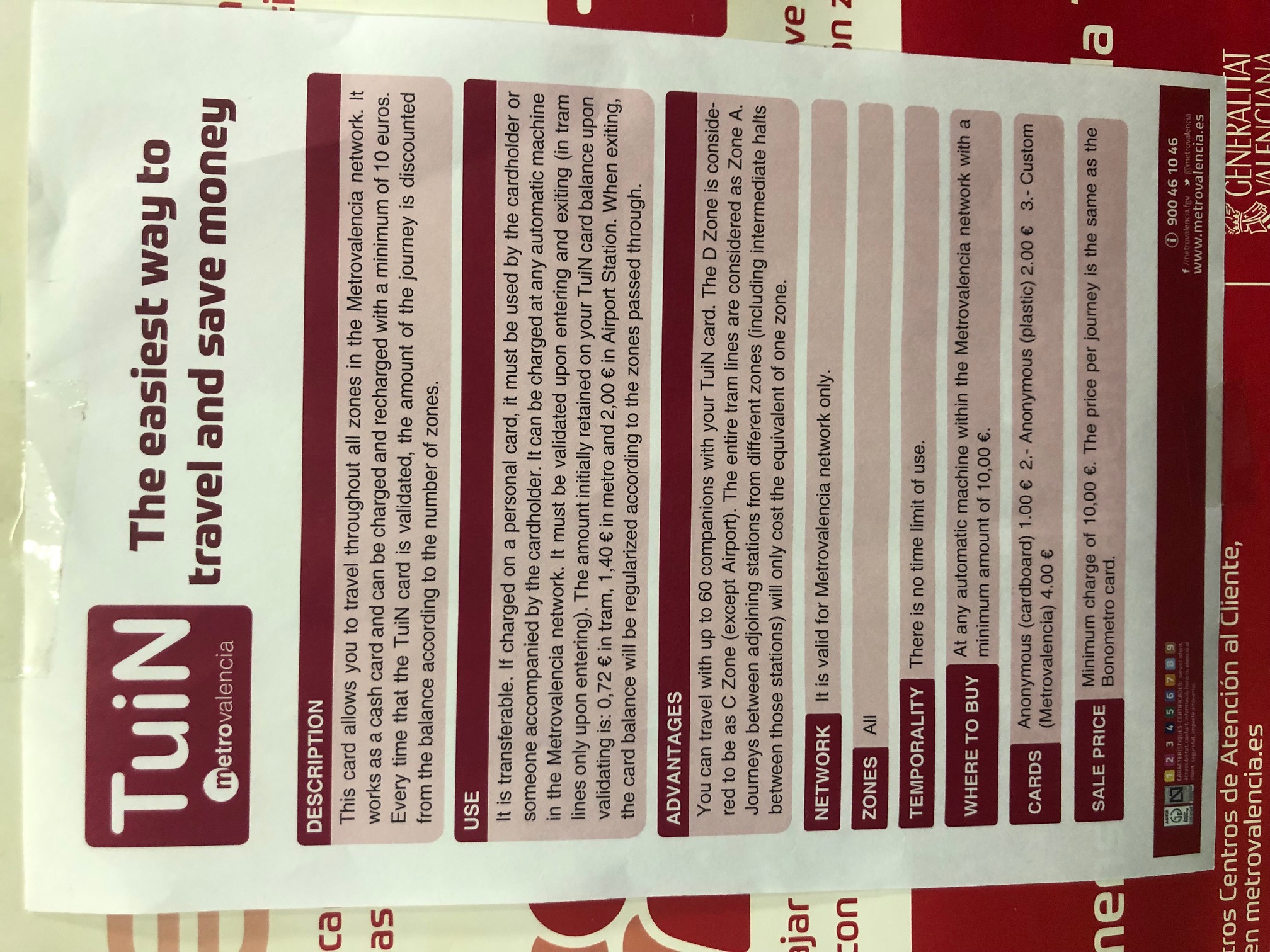 Tip: To make your travelling throughout Metrovalencia network more comfortable, we recommend purchasing the TuiN card. See this link for more information.